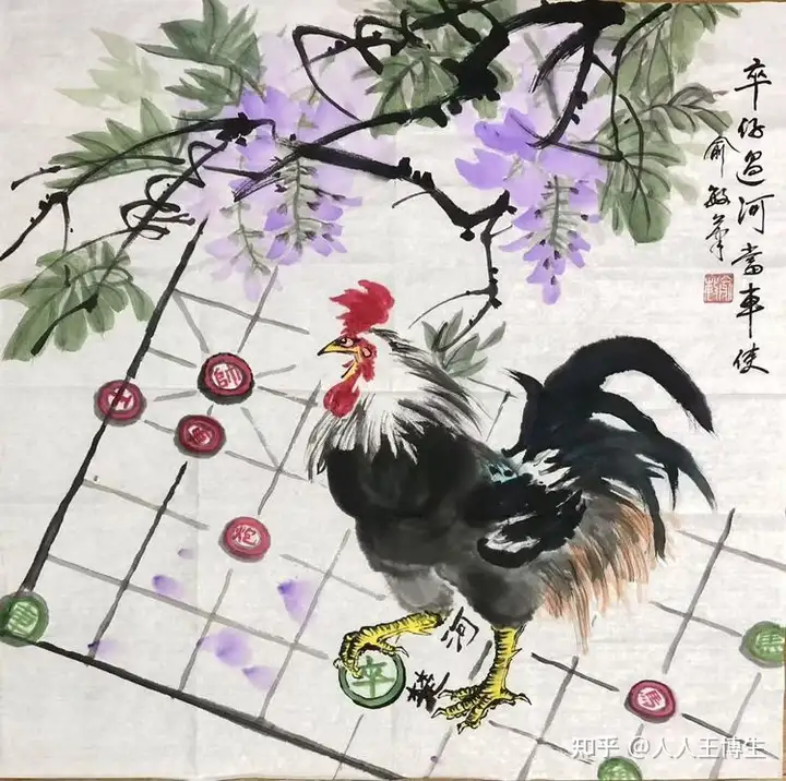 黄俞敏,中國畫《卒仔過河当車使》 68cm x68cm