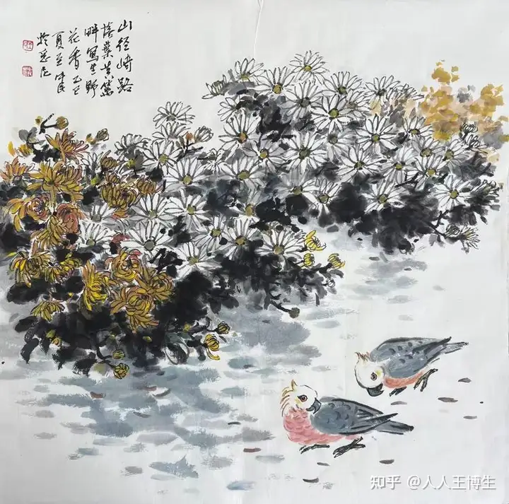 王中民 国画《篱畔野花香》50x50cm