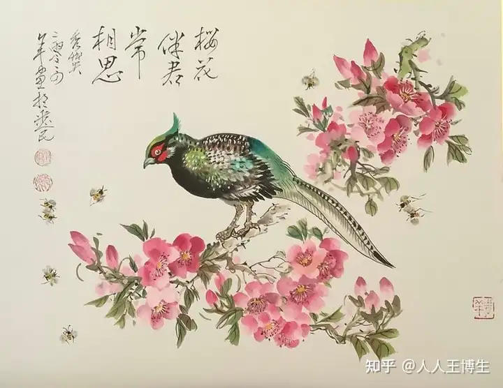 国画《樱花伴君常相思》