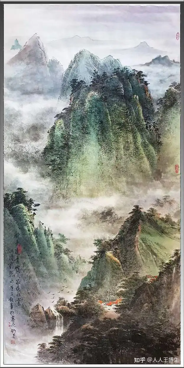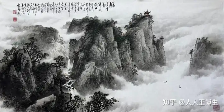 凌錦輝,中國水墨畫《風湧雲濤開天鏡,山光秀色在其中》 68cm x138cm