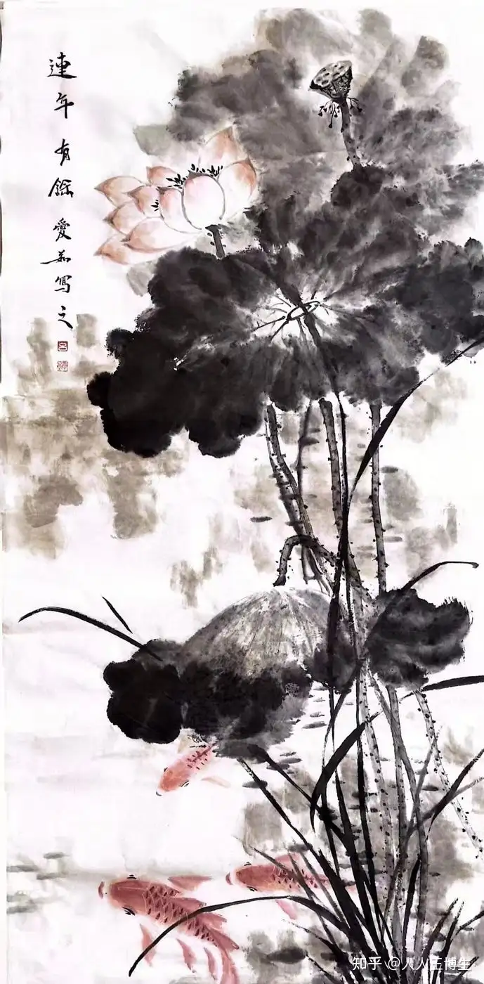 吕爱茹 国画《连年有余》68 x 136cm