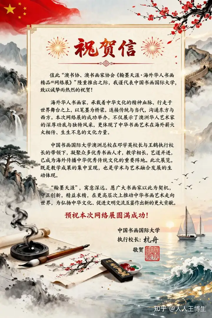 来自中国书画国际大学执行校长 杭舟先生的祝贺信