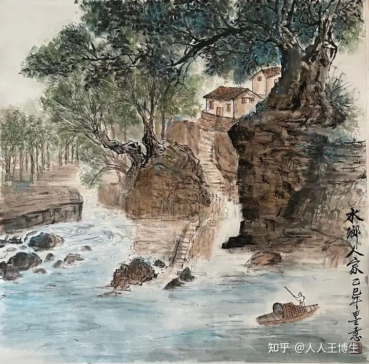 国画《水乡人家》