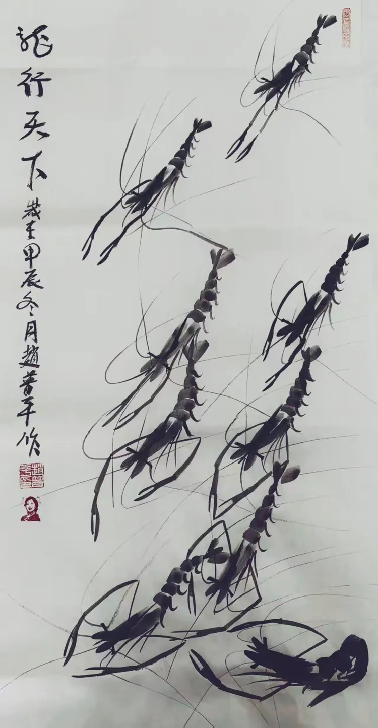 中国第一长发女画家龍蝦公主赵普平女士。赵普平,汉族,原籍河南省邓州市人,生于1962年,现居北京。自幼爱好书画,1984年毕业于湖南美术学院。1986以来曾多次拜访名师白石女弟子郭秀义为师,通过指点得到真传,画龍虾、蟹栩栩如生。其绘画艺术更具品位。对画虾,蟹画竹子及花鸟情有独钟。赵普平画龙虾几十年如一日,精心研究把虾画得活灵活现,让人赞不绝口。