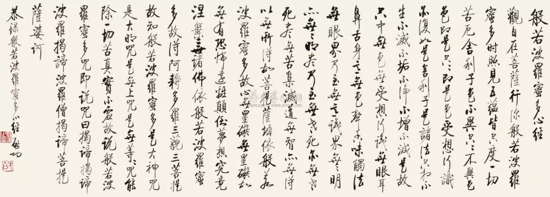 启功先生此幅行书《般若波罗蜜多心经》为其晚罕见的大尺幅书法巨制。