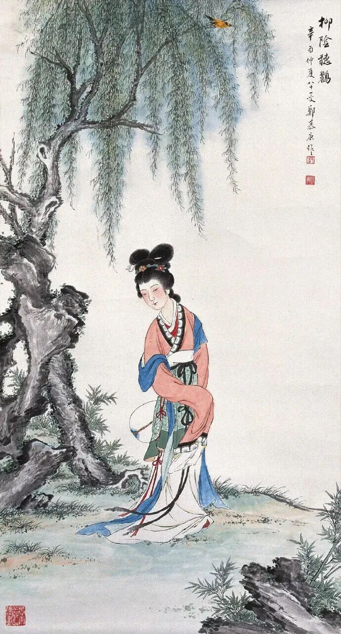 [摘要] 柳阴听鹂焦阴仕女寒梅仕女