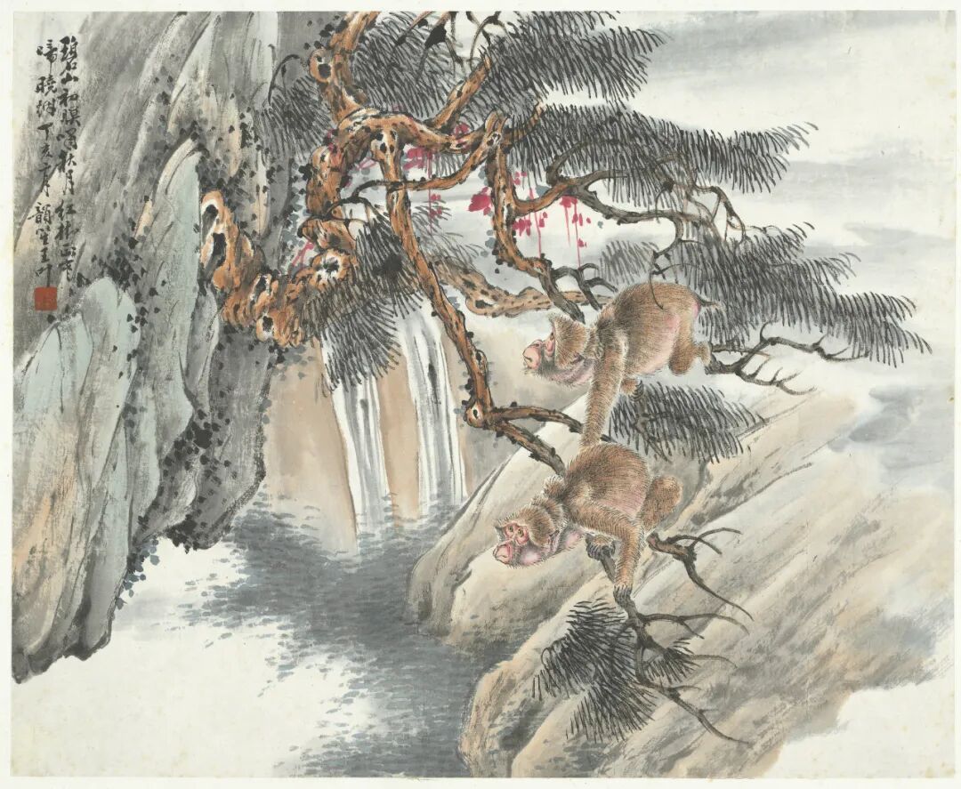 《民国合作十二生肖图册》,作者: 陆翀、吴青霞、孔小瑜、朱嘉、周柏生、李益亭、赵敬予、洪庶安、王叶、金梦石、戈荃、孙镐青(共十二位画家)。尺寸: 每开约 31 x 38.2 厘米,台北故宫博物院藏。