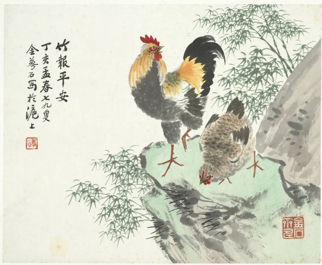 金梦石(1869-1947): 海派老辈画家,人物、花卉、翎毛皆能,画风在传统基础上有所新意。