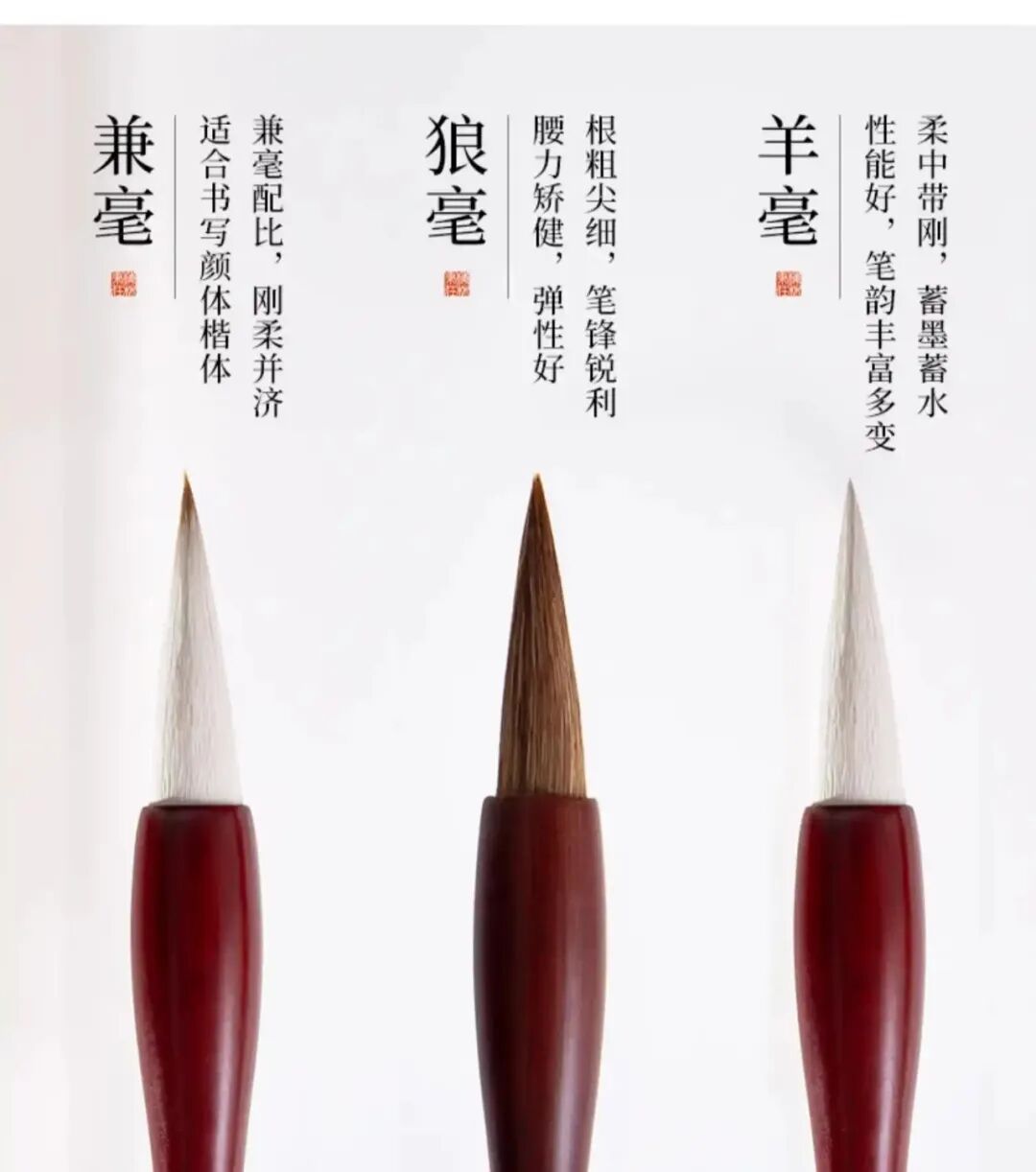 1.按照笔毫的软硬程度划分,大致分为软毫、硬毫和兼毫