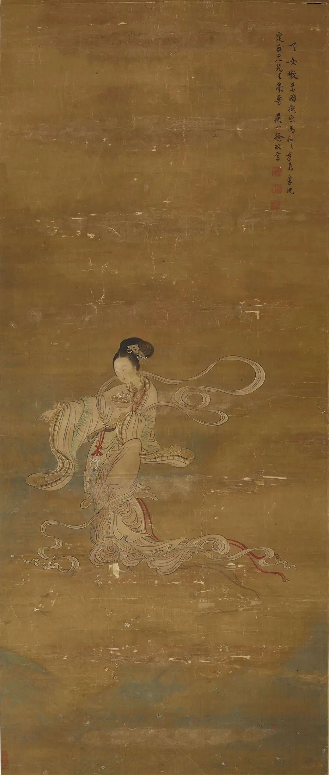 [摘要] 明代洛神 现藏于英国博物馆‌洛神‌是中国古代神话中著名的水神形象,相传她是伏羲氏之女,因游于洛水时溺亡,后化为洛水之神。这一形象最早见于屈原的《楚辞·天问》,其中记载河伯向天帝告状,称后羿射杀河伯并娶宓妃为妻。‌‌‌‌‌传说中河伯曾窥见宓妃美貌,设计使其溺亡;后羿射伤河伯后娶宓妃为妻,最终天帝封宓妃为