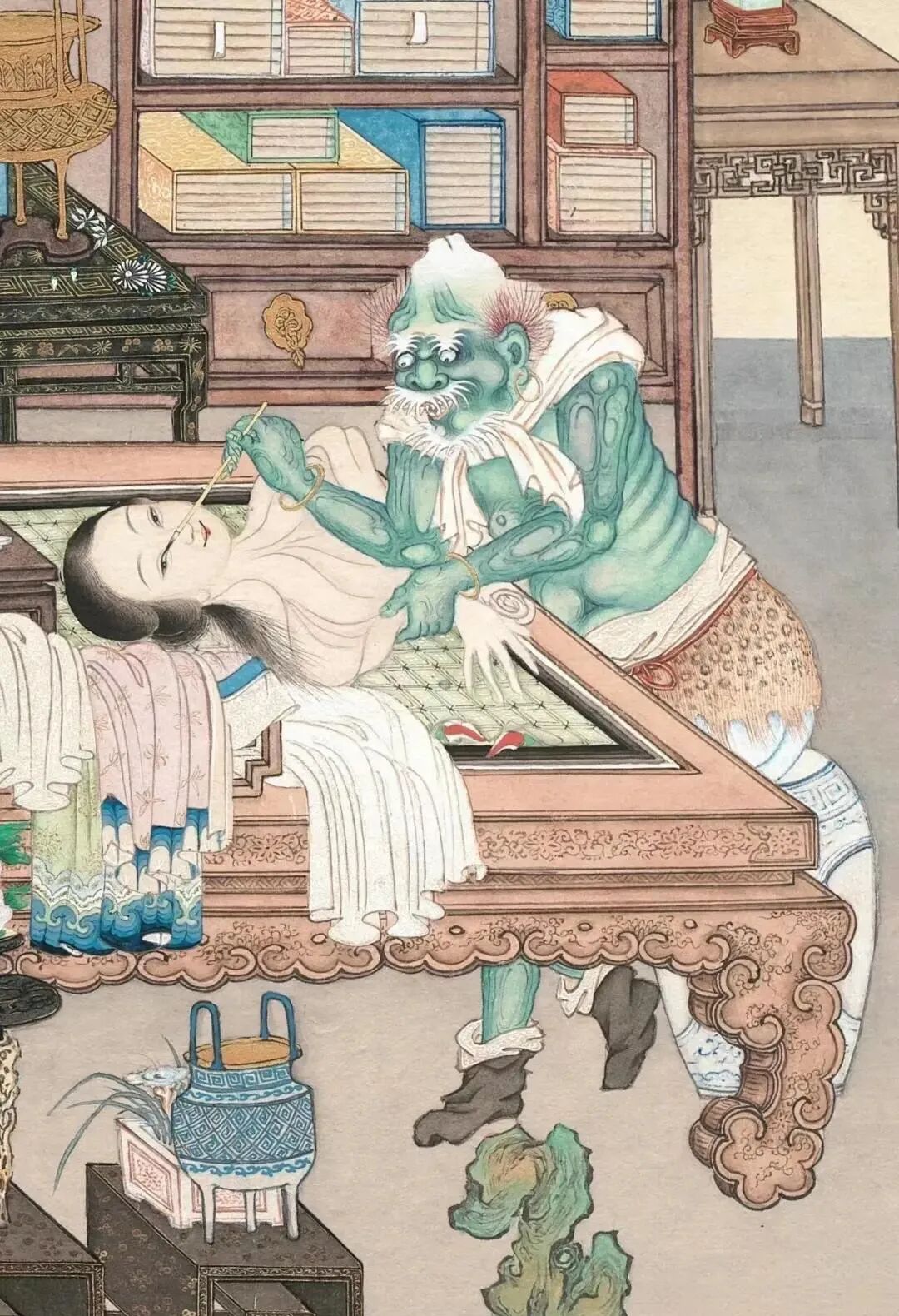 什么样的人算美人?每个时代有每个时代的标准,每个民族有每个民族的标准。“情人眼里出西施”,这说明每个人也有每个人的标准。《诗经·卫风·硕人》里有“手如柔荑,肤如凝脂,领如蝤蛴,齿若瓠犀,螓首蛾眉”,意思是手指如初生的茅草一样纤细白嫩,皮肤像凝冻的脂肪一样洁白柔滑,脖子如天牛的幼虫一样白嫩颀长,牙齿如瓠瓜的种子一样洁白整齐,额头宽广光滑如同蝉的脑袋,眉毛修长好似蛾子的触须。接下来还有两句:“巧笑倩兮,美目盼兮。”仪态生动,神韵飞扬。这大概是最经典的美人描写,每一个比喻都形象卓越,合起来一个美貌佳人便栩栩如生。一开始便登峰造极,令后人望而却步。