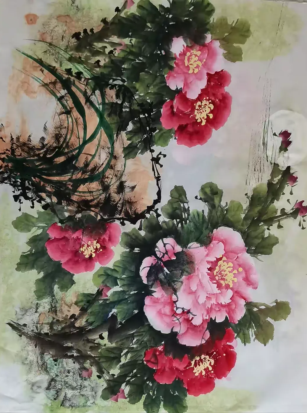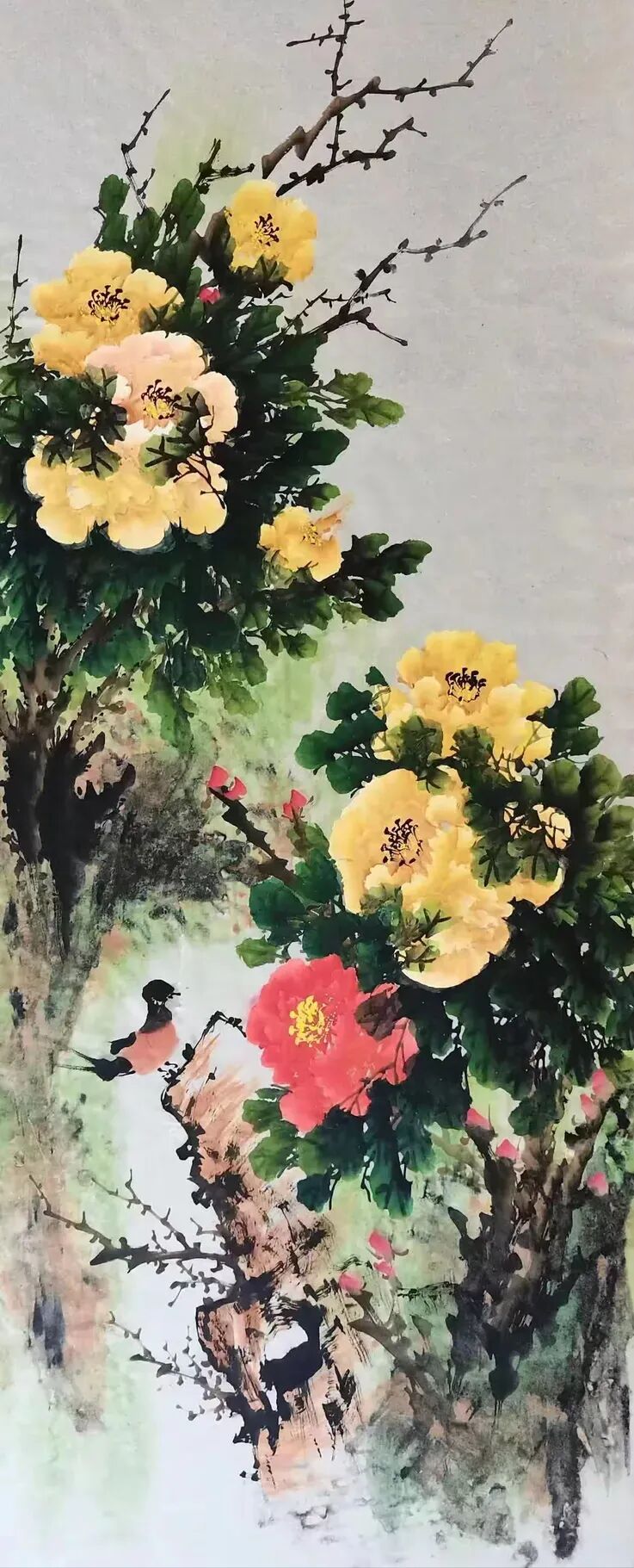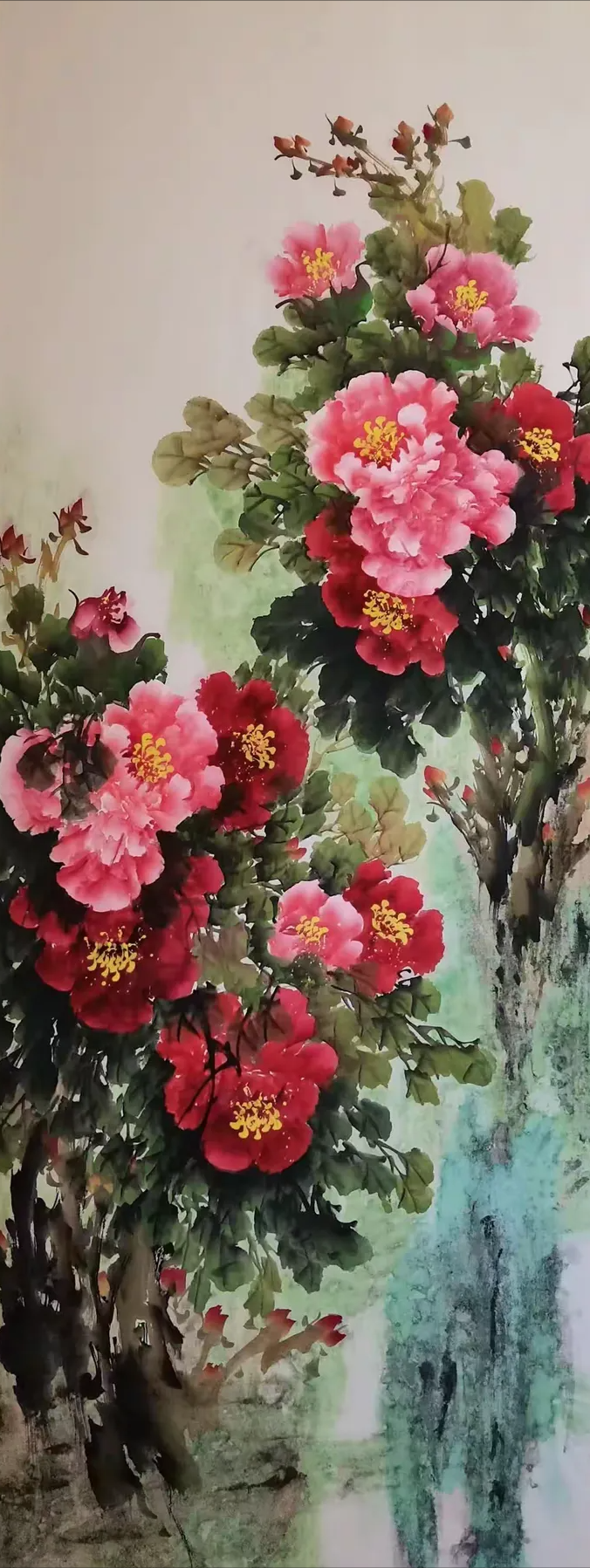 Introduction of the PaintressQiao Aihua, a native of Luoning County, Henan Province, is a noted Chinese finger paintress, and a Country-level first grade artist,also an inheritor of intangible cultural heritage and member of a council of China Painting and calligraphy Association,being invited as a special artist by both China Century Altar Art Museum and Jiangsu Chamber of Commerce.Qiao Aihua was born in 1950 and lived in a poor peasants’ family in mountainous area of western Henan Province. As a child she was unable to go to school because of poverty, but liked drawing very much,particularly good at drawing peony and plum blossom. As a very little girl, she started pasturing cattle in the hills and doing farm work in the farmland with her father. She was so good at watching and appreciating the various and graceful bearing of flowers and plants whenhaving a break. When she was only seven, she started to draw tree branches and wild grass on plane rock with a sharp stone. At the age of twelve, she learned to draw plum blossom on the land ridge using tree branches. Enlightened and inspired by her father, she started to try drawing peach and plum blossoms and peony flower on the waste cloth and silk using her fingers when she was 22. At the age of 40, fortunately under the guidance of Mr. Wang Chengxi, a great master of painting plum blossom in our country, Qiao Aihua’s inspiration burst out and her thought of composition of a painting was greatly expanded and her skill of composition advanced rapidly. Then, Qiao successfully facsimiled the Master’s great works of plum blossom,and was sincerely appreciated and praised by the Master himself. By and by, under the conception of dexterously utilizing the flow direction and tendency of the Yellow River, Qiao succeeded in painting a finger painting titled The First Plum Blossom Under Heaven that shock the painting industry. In November the same year, she drew a painting called Spring Coming With Peony and Plum Blossom, which was praised and top rated for two varieties of excellent blossom in one painting and both colorfulness and plainness in one show. It was also the first time for her to draw such a painting that was top rated and collected with a long price by foreign friends. Afterwards, the quality of her painting was bettering continuously and novelly and skillfully conceived works emerged endlessly.Nearly over two thousands of her wonderful works were published and collected by about a hundredpainting lovers, including some state and provincial or ministry leaders , some great masters, professors of the painting circle, scientists of aerospace, notable hosts of CCTV, well-known film stars and some foreign friends.In March 2015, Qiao was appointed as an academician of Qingfeng Painting and Calligraphy Academy of Henan Provence. Her large-scale painting Drawing of Peony was enshrined ceremoniously by the PLA stationed in Luoyang during the 70th anniversary of the victory of the Anti-Japanese War. In September 2016, Qiao’s finger painting works was intended to be nonphysical cultural heritage of Xigong District, by the Government of Xigong District, Luoyang City, Henan Province. In October, 2016, Qiao was formally absorbed into the Council of Painting and Calligraphy Art as a member of China Intangible Cultural Heritage Protection Alliance.In February, 2018, Qiao’s studio named Henan-Luoyang Ai-hua Studio was formally identified as the cooperator of China Century Altar Traditional Culture Season by the Administration Center of China Century Altar with her finger painting works being the permanent collection of China Century Altar Art Museum. Her finger painting works titled Long Scroll of Luoyang Peony had the honor to win first prize of art category among Henan Provincial Painting and Calligraphy Works Exhibits, during the theme activity titled “Eulogizing the Centenary Anniversary with Painting and Calligraphy” equivalent to “Celebrating of the Centenary of the Chinese Communist Party” inSeptember 2021.