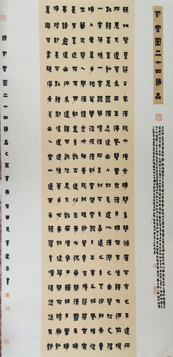 黄砚溶、 李东生、窦鸿山、 郭源、李吉晖、 渠英辉、赵素华、董亚生、 王金友、孔凡维行草书《唐诗望岳》、叶淇草书《太乙近天都》、李再前书法2幅、王晨隶书《千字文》、张金国《满江红》、苏恩琪《春联》、陈俊宇《春联》、陈佳烨《春联》、孙佳熔《春联》、陈雅涵《春联》、陈宝林《春联》、陈钰雯《春联》、高炫腾《春联》