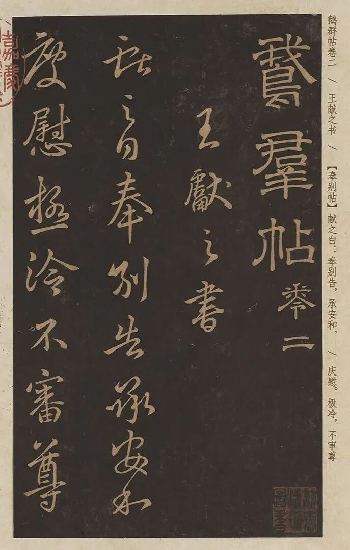 相比单一的内擫,他融合外拓,更具视觉、艺术效果,层次丰富,耐得住品析,袁昂《古今书评》曾写道:“张芝惊奇,钟繇特绝,逸少鼎能,献之冠世”,宋齐之间书学地位,最高者也是王献之