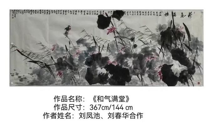 活动现场,各位书画家凝神聚气、挥毫泼墨,充分发挥自身艺术造诣,创作了多幅兼具艺术性与观赏性的书画作品。其中,画家刘春华及刘凤池分别创作了两幅丈二匹的大幅荷花主题国画作品,笔墨苍劲、意境悠远,将荷花的清雅高洁展现得淋漓尽致,成为此次笔会的一大亮点。
