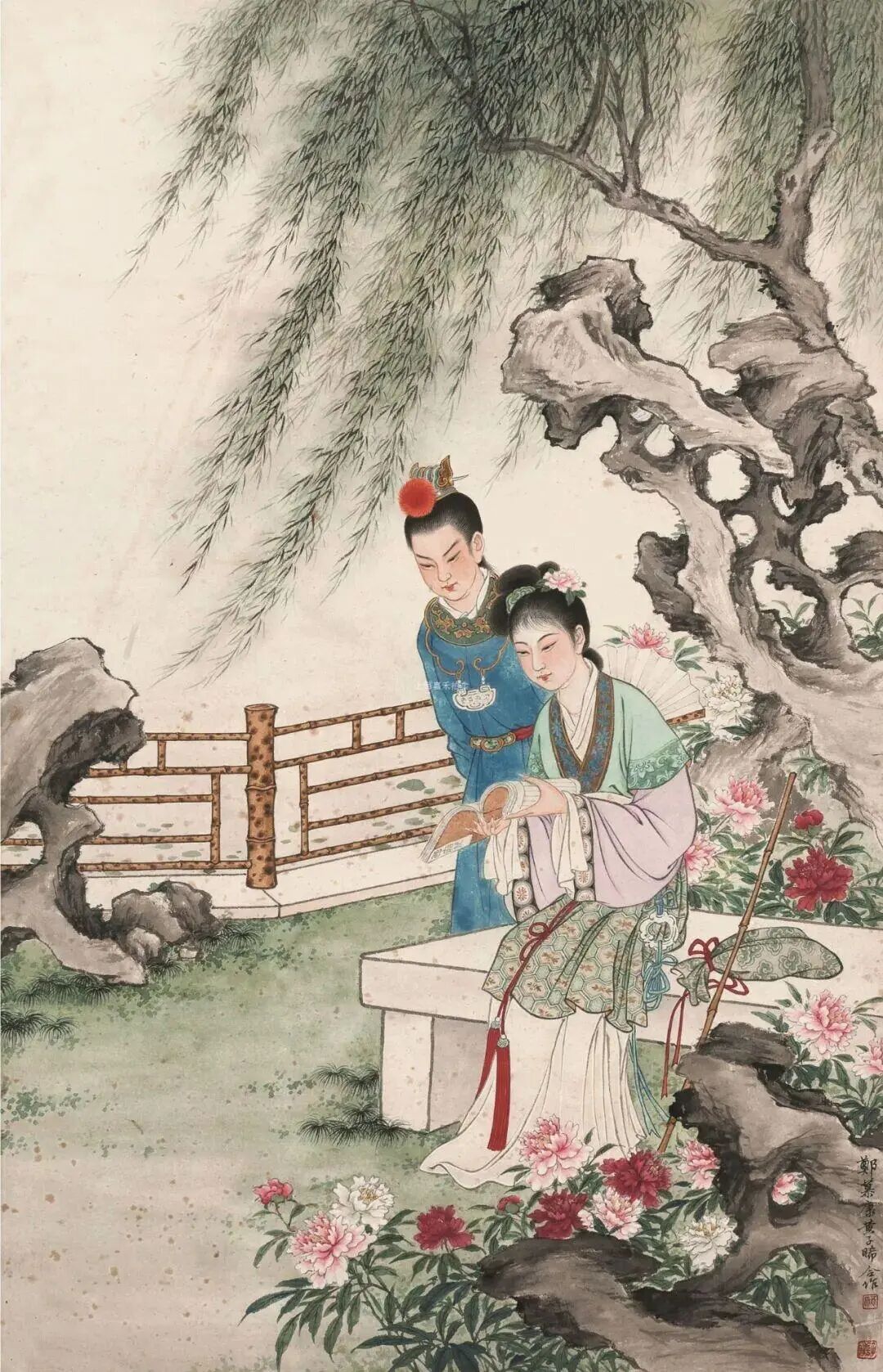 [摘要] 郑慕康所作仕女,相貌古雅秀丽,仪态端庄,颇能传神。宝钗扑蝶宝黛共读西厢瑶姬献寿图片