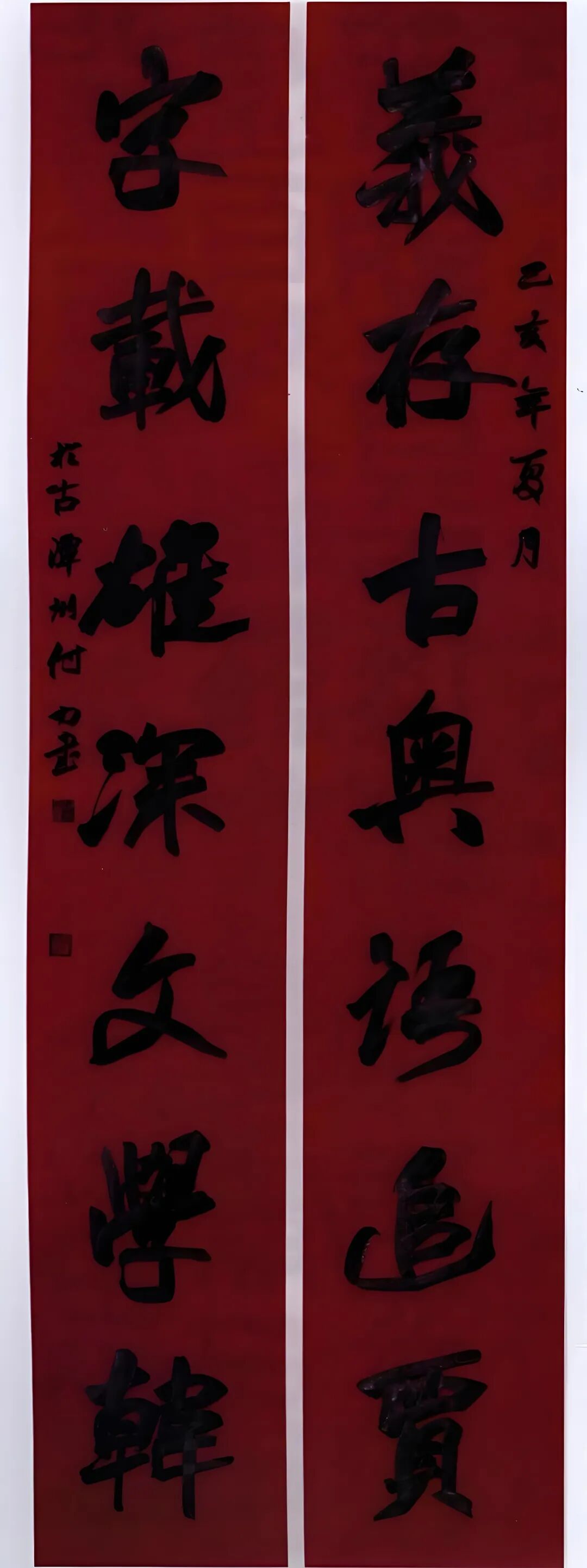 [摘要] 在书法技艺层面,这30副对联可谓诸体皆备,风格纷呈。篆书的古朴典雅,隶书的端庄厚重,楷书的法度严谨,行书的潇洒灵动,草书的奔放恣肆,都在方寸对联间得到完美展现。一幅获金奖的草书对联“墨池飞出北溟鱼,笔锋杀尽山中兔”,以张旭狂草为基,线条如龙蛇竞走,墨色浓淡相宜,将书法艺术的节奏感与韵律美表现得淋漓尽致