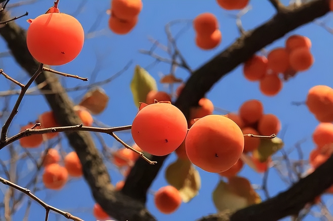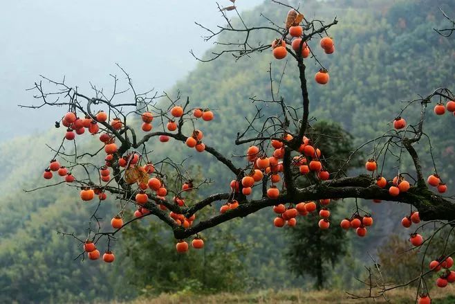 深秋萧瑟,万物凋零,唯有柿子树红透天下。