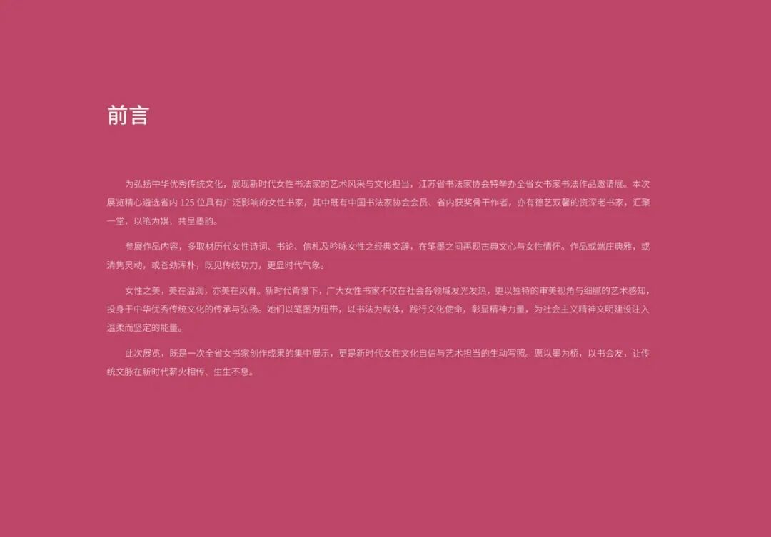 展览共展出江苏老、中、青三代女书家的125幅精品力作,系统呈现了江苏女书家们深厚的传统功底、独特的艺术风格和卓越的艺术成就,既是江苏女性书法创作实力的一次集中展示,也是江苏书法事业蓬勃发展的生动缩影。