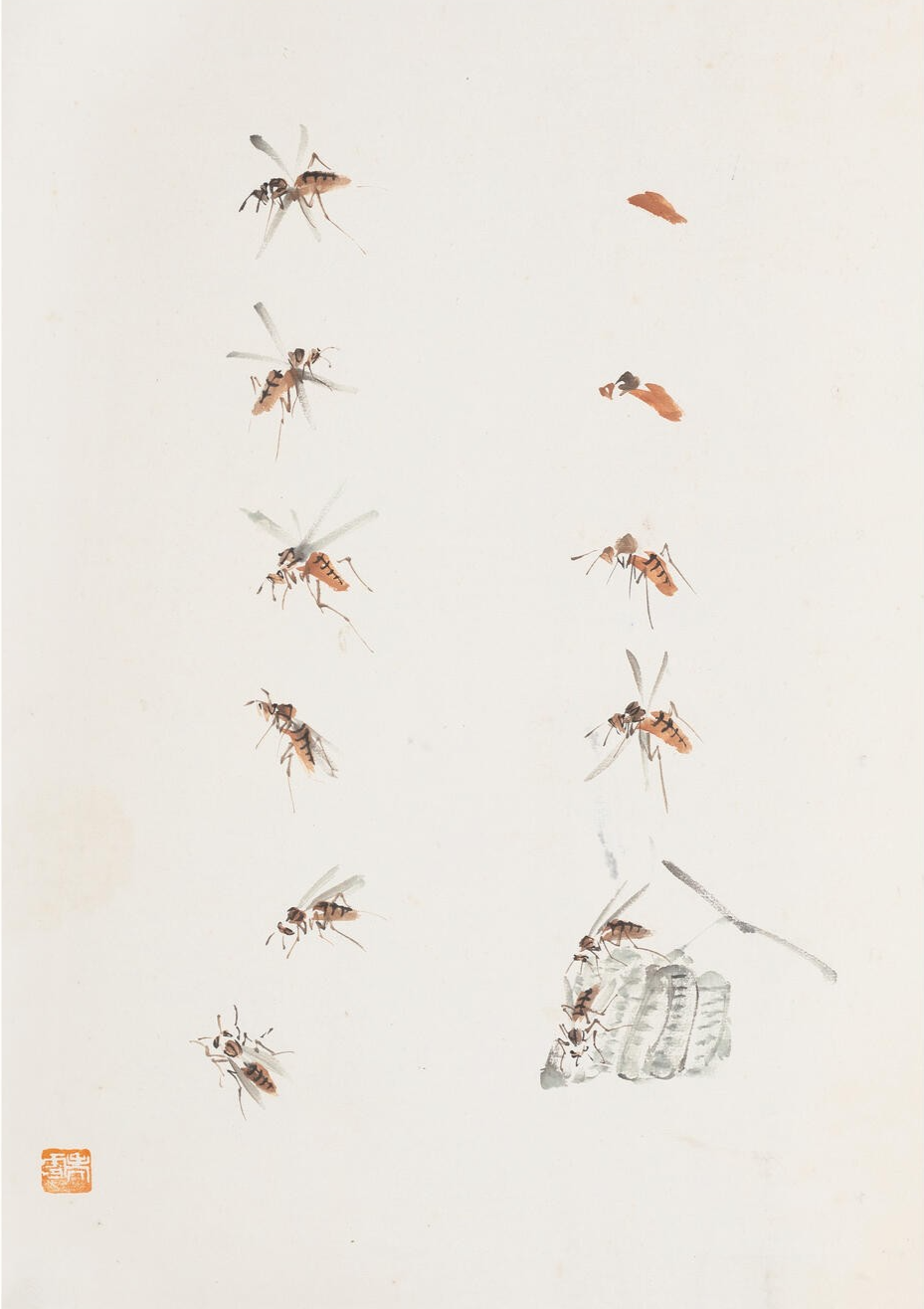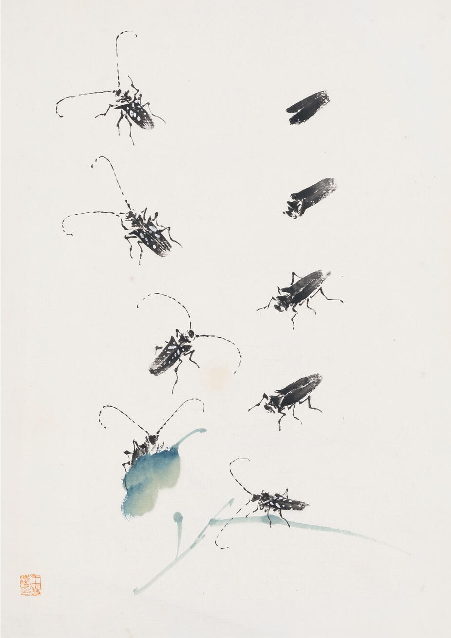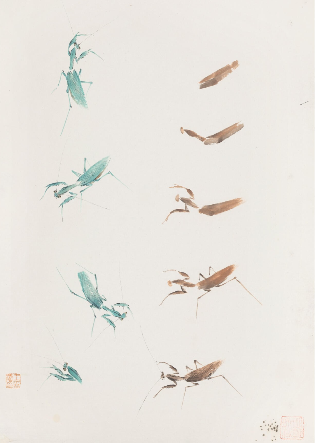 作为课徒示范作品,此册在内容编排上具有明确的教学逻辑。从不同禽鸟到各类草虫,每一开聚焦一类题材,由简入繁、由局部到整体地展示笔墨规律与造型法则。