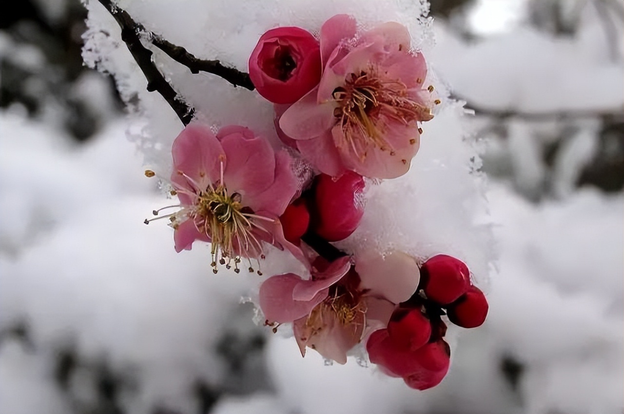 冬雪虽大,可花的艳丽是怎么也压制不住的。