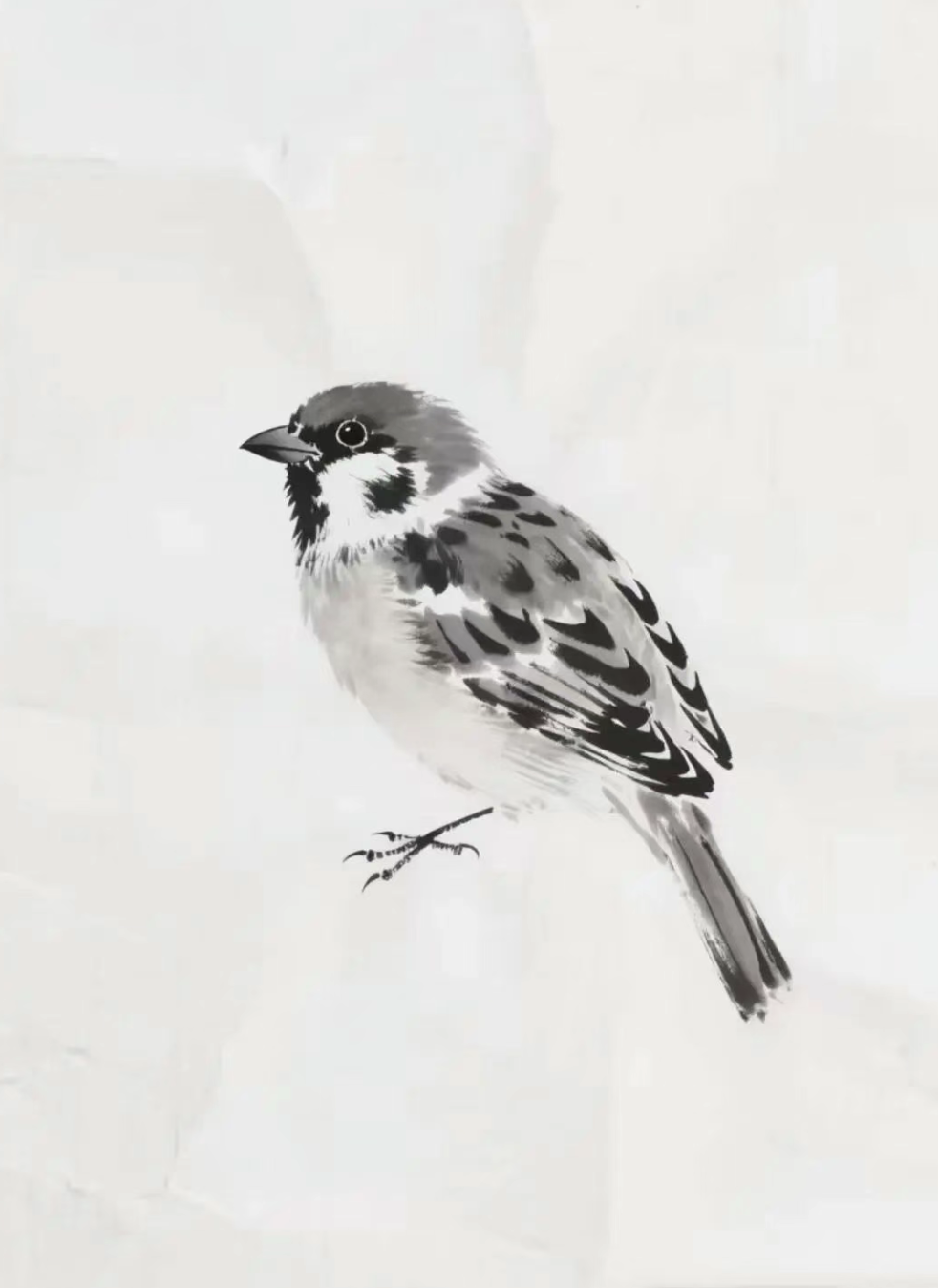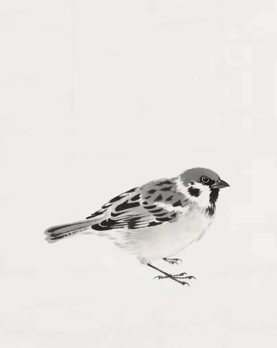 这样,一只水墨小麻雀就画好了。刚开始练习的时候,可能会觉得有些生疏,但只要多练习几遍,掌握好墨色的浓淡变化和笔触的运用,就能越来越熟练。