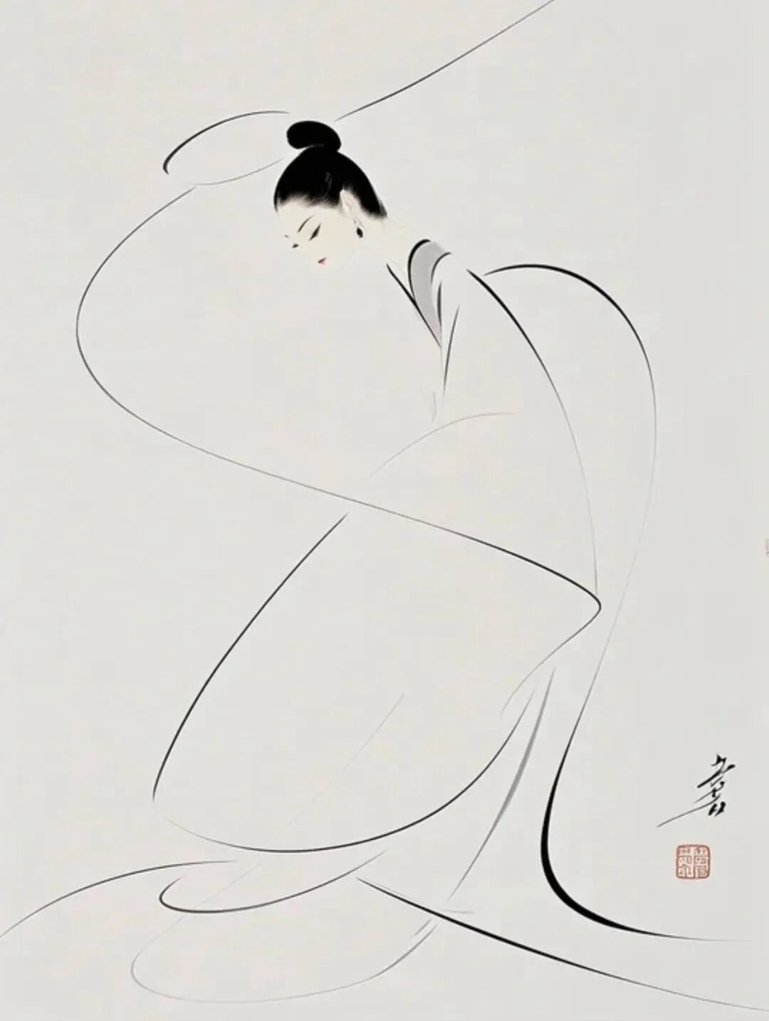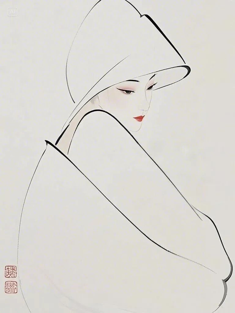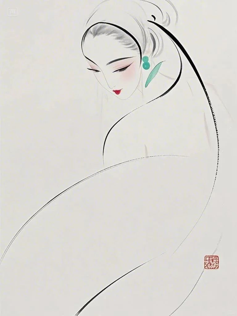 仿佛能从那流转的线条中,感受到少女的呼吸与心绪,是静坐时的安然,是凝眸时的澄澈,亦是转身时的轻盈,这般气韵,让画作有了生命与温度。