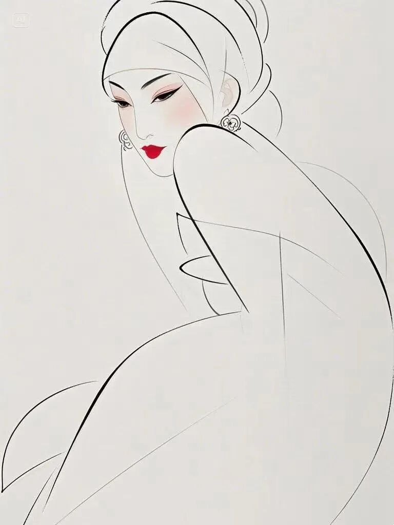 [摘要] 目光触及画作的刹那,便被那流转的线条攫住了心神。没有繁复的色彩堆砌,仅靠墨色的浓淡虚实,一笔笔勾勒出古风少女的绰约风姿,这般技法,着实令人叹服。线条是这幅画的灵魂,画师的运笔如行云流水,无半分滞涩。时而纤细如丝,勾勒出少女鬓边垂落的发丝,根根分明却不显生硬,似有微风拂过,便要轻轻颤动;时而圆润婉转,