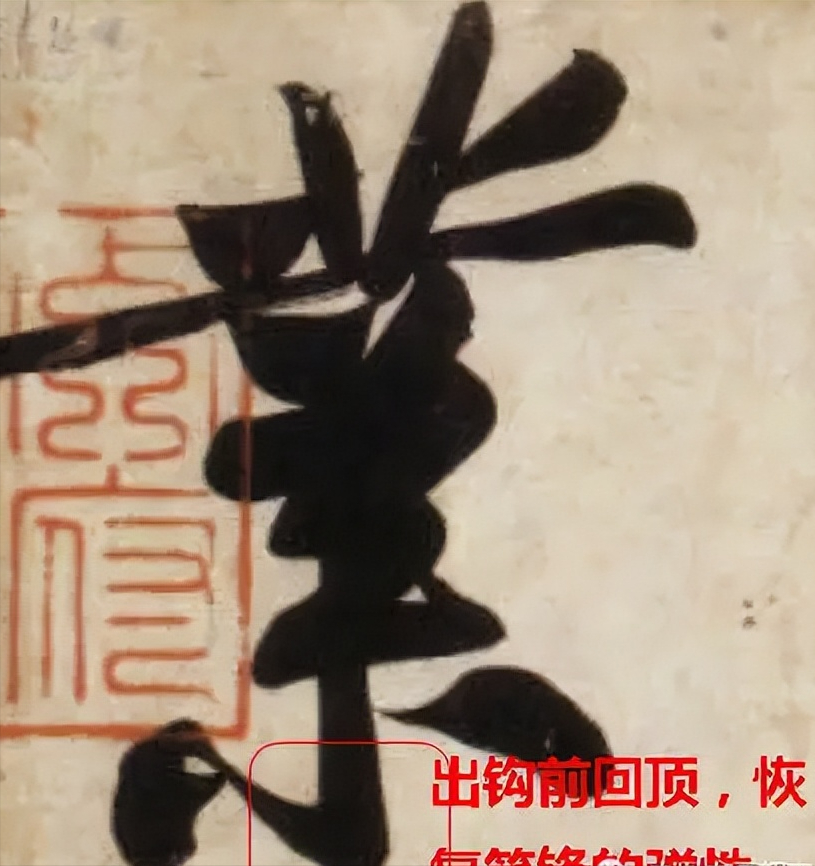 笔往前运走,就免不了要倒下来,弹性就会惭弱下去,需做个 “回顶”的动作立起笔锋,如折角处的挫锋,挑钩处的蹲锋,捺底出锋前的微微回缩(所谓挫、蹲、回,都是回顶用劲的一种),均使散败的毛笔在一定的程度得以复原立起,甚至使笔处于特殊的强劲状态,铮铮欲弹走,大大增强了“笔力”。