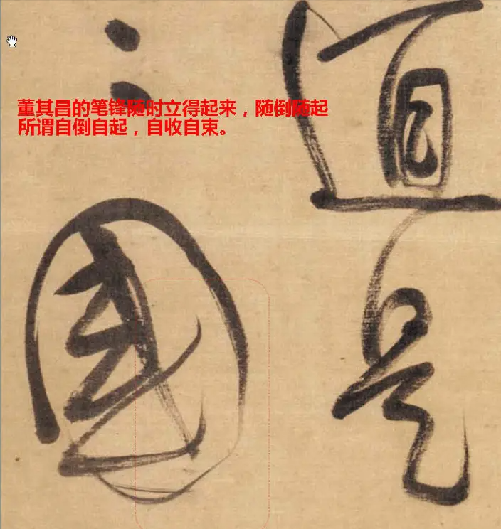 所以运笔的时候,笔毫总是一曲一挺,时展时聚地运行着,尤如钟表的发条,铮铮欲弹走,笔一提纸,笔头就能恢复挺直齐顺,这就是明代大书法家董其昌其所说的:“自起自倒,自收自束”,宋代苏轼说“方其运也,左右前后,却不免欹倒,及其定也,上下如引绳,此之谓笔正。”笔锋收起时象悬着重物的绳子一样挺直,古人是何等自如地运用毛笔啊!