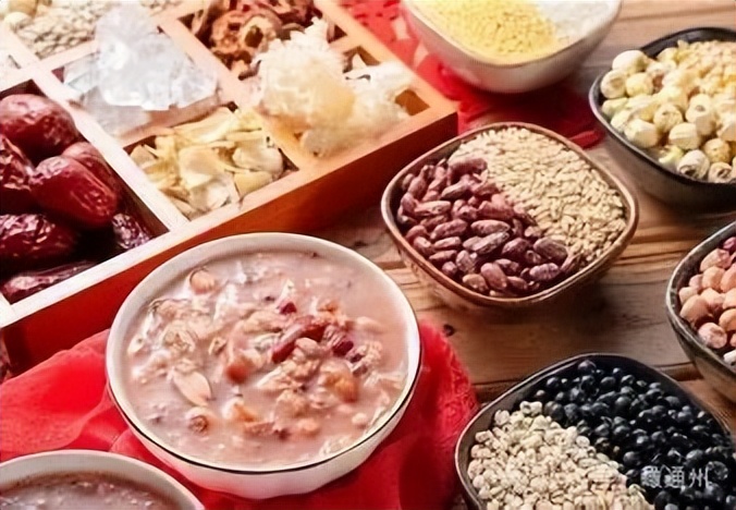 腊月初八俗称“腊八”,早晨熬腊八粥。光绪五年《通州志》载:“八日,用各种栗、米杂诸果同煮,曰‘腊八粥’”清富察敦崇的《燕京岁时记》说的更详细了:“腊八粥者,用黄米、白米、江米、小米、菱角米、栗子、红豇豆、去皮枣泥等,合水煮熟,外用染红核桃仁、杏仁、瓜子、花生、榛穰、松子,及白糖、红糖、……葡萄,以作点染。切不可用莲子、扁豆、薏米,用则伤味。每至腊七日,则剥果涤器,终夜经营,至天明则粥熟矣。除祀先供佛外,分馈亲友,不能过午。”通州主要以普通“杂豆米”为主。富户用料诸如大米、小米、玉米渣、高粱米、红薯、花生仁、瓜子仁、核桃仁、红枣、栗子、红豆、绿豆等,穷家则尽其所有,一般是小米、玉米渣、红豆、红薯等几种。熬腊八粥多在初七作好泡豆、淘米、煮栗、洗枣等准备工作,后半夜开始熬,天亮前熬好,初八清晨各商号、官宦富户之间相互馈送。馈送时撒放青丝、红丝、蜜钱果脯、荔枝肉、桂元肉、桃仁、杏仁、核桃仁、松子、瓜子等果料。吃时加红糖、白糖、玫瑰木樨等甜料。各家在佛前、祖先桌供腊八粥。