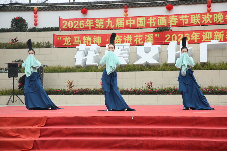 据悉,第九届中国书画春节联欢晚会以“丹青国韵,翰墨迎春”为核心主题,深耕传统文化沃土,推动书画艺术走进基层、服务群众,此次四川会场落地花溪社区,更是将书画艺术与社区文化、民俗风情深度融合,彰显了巴蜀文化的独特魅力与新时代基层文化建设的丰硕成果。活动得到社会各界广泛支持,般若寺、天一公司、小熊猫森林公园、瀚锦园林公司、聚福康生物科技公司等驻花溪单位携手赴会;中国书画春节联欢晚会总策划总导演王博生,北京生态摄影协会会长高菡,中国书画春晚主持人丁然,都江堰青年摄影家协会受邀出席;第九届中国书画春节联欢晚会四川会场总策划龚大成、总导演左顺勇全程参与活动,与全体花溪居民欢聚一堂,共贺2026丙午马年新春,共话文化传承,共谋社区发展。