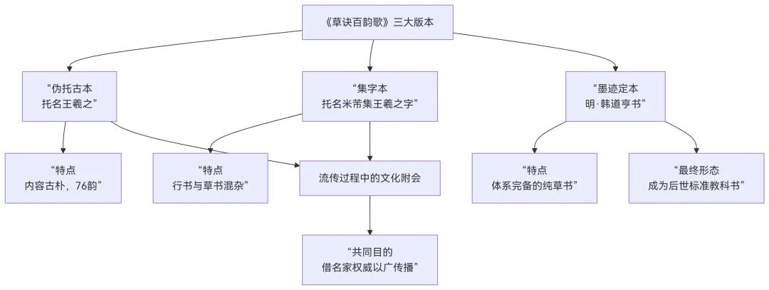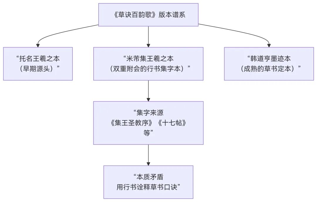 明代的韩道亨本和托名王羲之的版本(实为宋代或更早的托古之作)和托米芾集王羲之《草诀百韵歌》”是三大主要系统,它们之间的区别主要体现在以下几个方面: