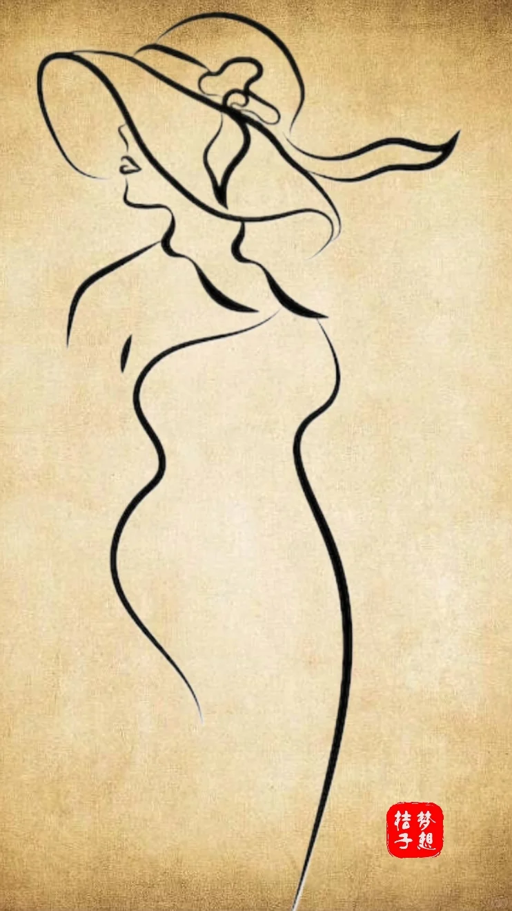 这些线条不追求复刻服饰的细节,不纠结于纽扣的位置、花纹的走向,只抓最核心的气质 —— 或许是少女微微颔首时的温婉,或许是转身时的洒脱,线条跟着情绪走,时尚感便跟着线条自然流露。